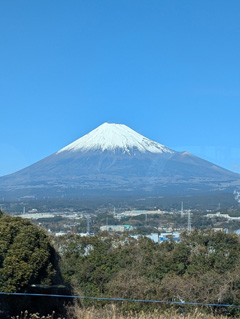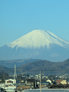 上の写真は伊吹山。この辺りから大雪で新幹線は5分遅れました。下の富士山は絶景でした。
