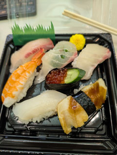 写真は昼食に買った握り鮨です。関西で握り鮨弁当を買うのは、考えてみると何十年振りになるでしょうか? ふと探してみても醤油が入っていませんでした。忘れたのかとも思いましたが有名な店でしたし、普通器の中に一緒に入っていますので、関西では素材の味を楽しむために敢えて醤油が無いのかと思い、そのまま食べました。