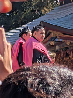 定例の「不動の庭で遊ぶ会」で成田山新勝寺に来ました。奇しくも節分の豆撒が行われていて上の写真のように力士の姿も見えます。