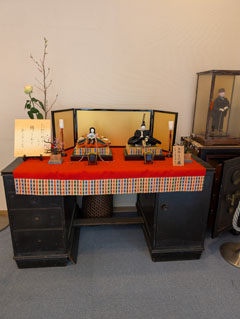 虚子記念文学館の談話室には早くも写真の雛が飾られていました。汀子遺愛の次郎左衛門雛です。